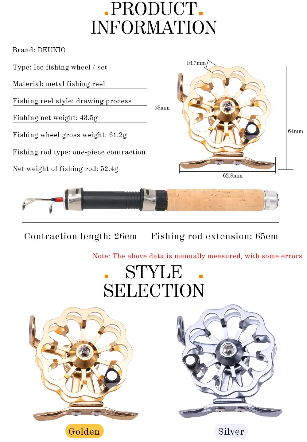 REVIEW TOP SELLER Deukio Full Aluminum Ice Fishing Combo Right hand V-shape 2BB+RBB Wheel 58mm Fly Reels Ratio 1:1