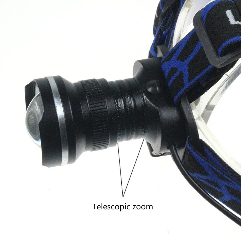 HIGH QUALITY T6 zoom searchlight aluminum tricolor charging fishing lights glare camping headlight lamp