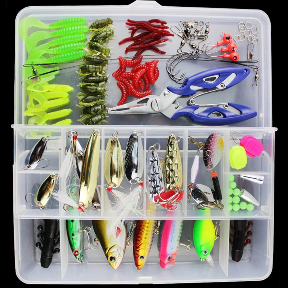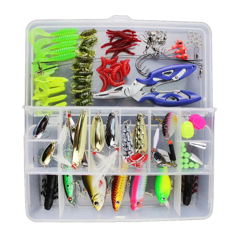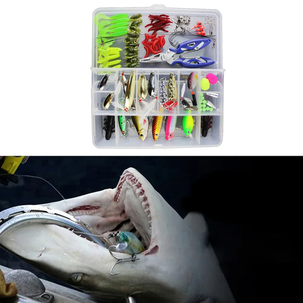 101pcs Mixed Baits Plastic Hard Soft Hooks Portable With Box Accessories Outdoor Tackle Fishing Lur
