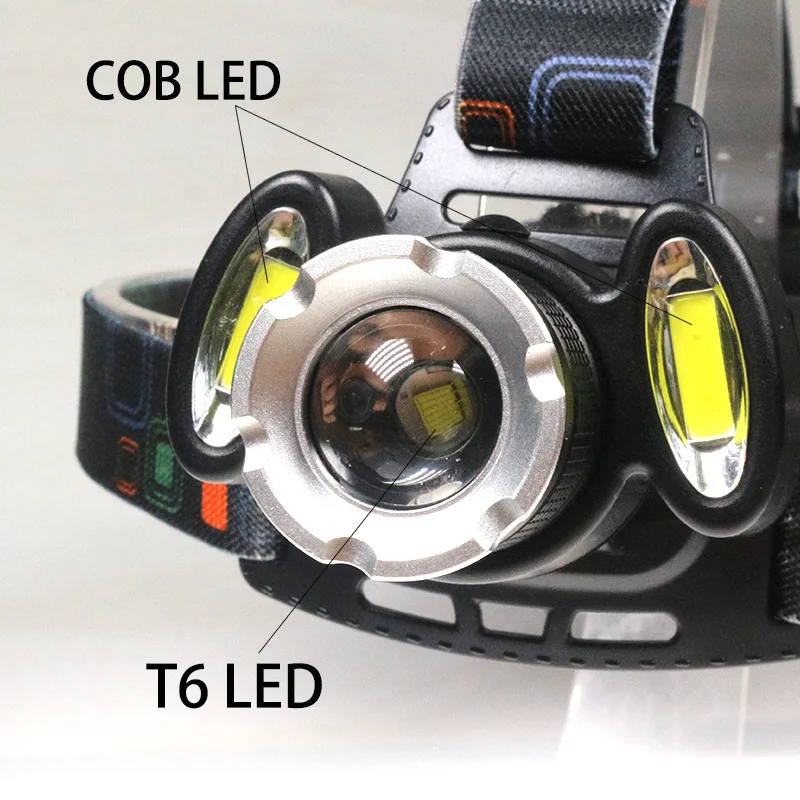 Super Bright Headlight 4 Modes LED Headlamp 8000LM T6 + 2COB Rechargeable Zoom Headlight For Huntin